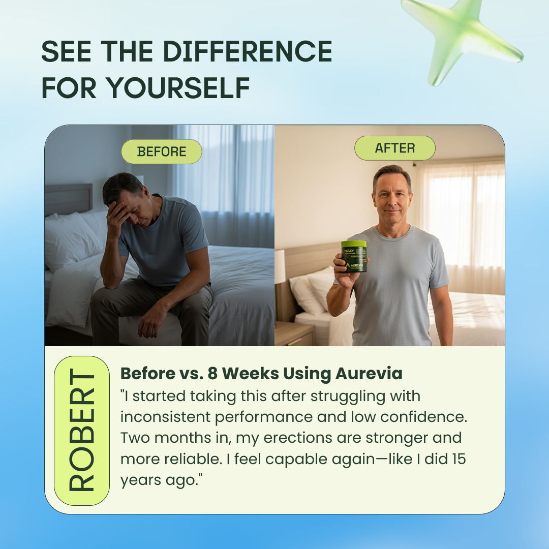 Aurevia restores the NAD+ your cells need to produce nitric oxide naturally. Viagra forces blood flow by amplifying whatever weak signal you have left. This fixes the production system itself. Your endothelial cells get the energy to manufacture nitric oxide like they did in your 20s. No planning around a pill. No timing sex 30 minutes in advance. No side effects. Just spontaneous, reliable erections that feel natural again.