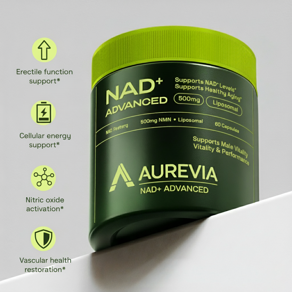 Aurevia® delivers 500mg of pharmaceutical-grade NMN to fix what pills can't—the cellular energy crisis that's killing your erections. By age 40, NAD+ levels crash 50%, starving blood vessel cells of the fuel they need to produce nitric oxide naturally. Without it, your endothelial cells can't manufacture the molecule that controls blood flow to your penis. Viagra amplifies a dying signal. This restores production at the source. Liposomal delivery for maximum absorption. No fillers. No side effects. Just cellular restoration that brings back spontaneous, reliable erections.