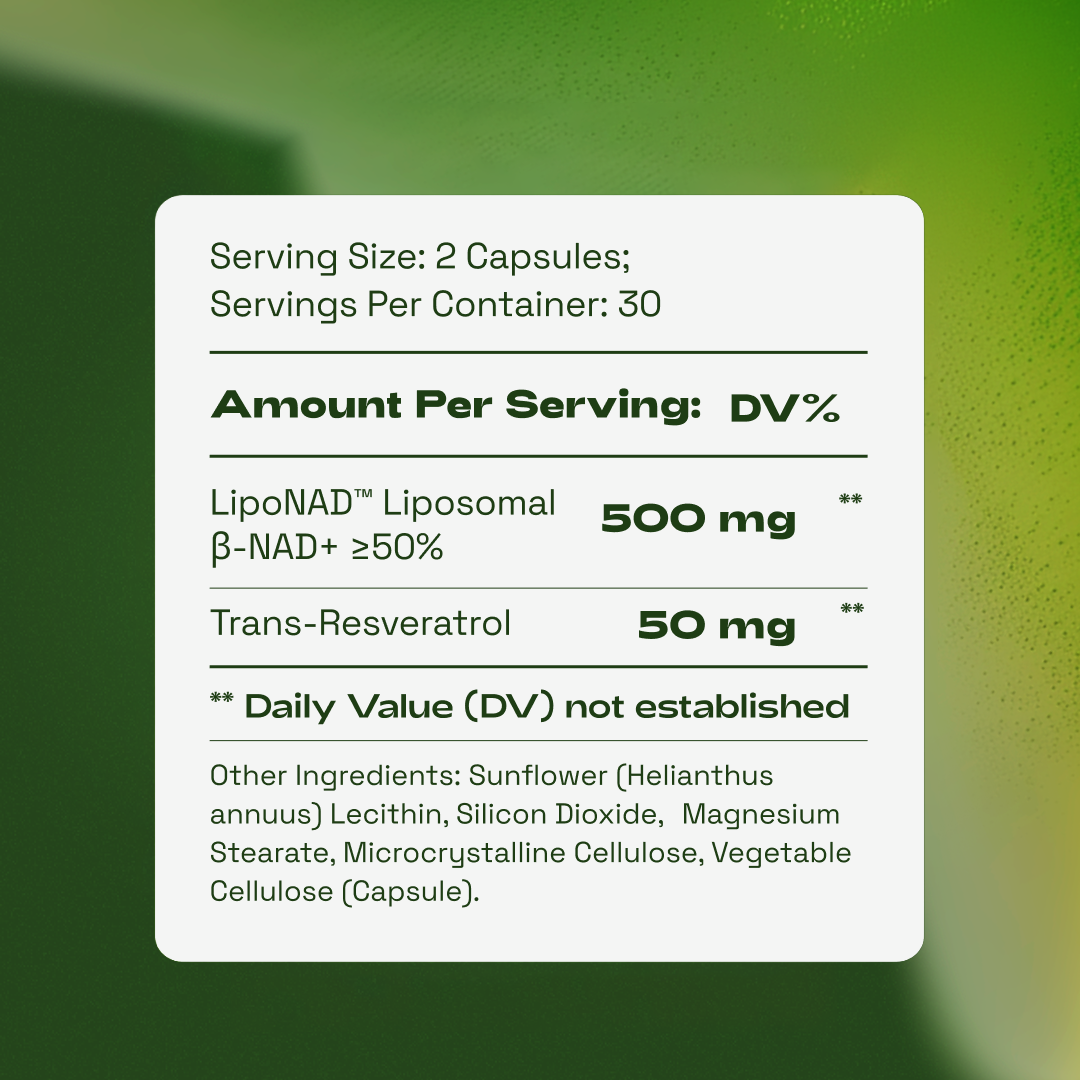• Fixes the Energy Crisis in Blood Vessels - Replenishes NAD+ depleted by 50% after age 40
